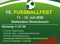 Anmeldung per Mail an elfmeterturnier@sv-ohmenhausen.de oder direkt per Anmeldeformular. Weitere Infos zur Veranstaltung findest du unter diesem Link.