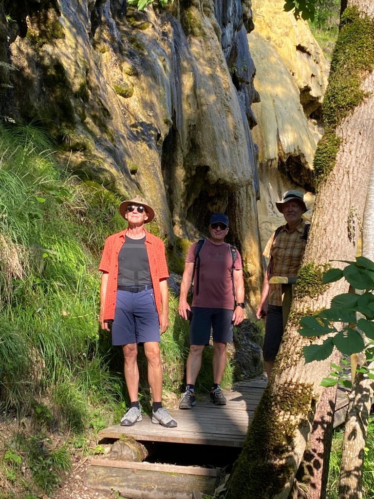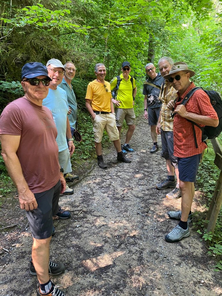 Am ersten Juliwochenende starteten 14 Sportfreunde in den Bregenzerwald. Nachdem wir unser Hotel in Lingenau bezogen hatten, rüsteten wir zur ersten Wanderung am Freitagabend. Der Durst übermannte uns, so dass wir nach ca. 300 m einkehren und den Flüssigkeitshaushalt ausgleichen mussten. Eine halbe Stunde später ging es dann auf die Quelltuff Runde. Leider hat es mit dem Bungeejumping nicht geklappt, deshalb legten wir den Abstieg zur Subersach-Schlucht auf dem Wanderweg zurück. Nach dem Überqueren einer Einmannbrücke konnten wir beim Aufstieg den Quelltuff bewundern und uns etwas erfrischen. Im Gasthaus bei einer kleinen Stärkung ließen wir den Tag ausklingen.