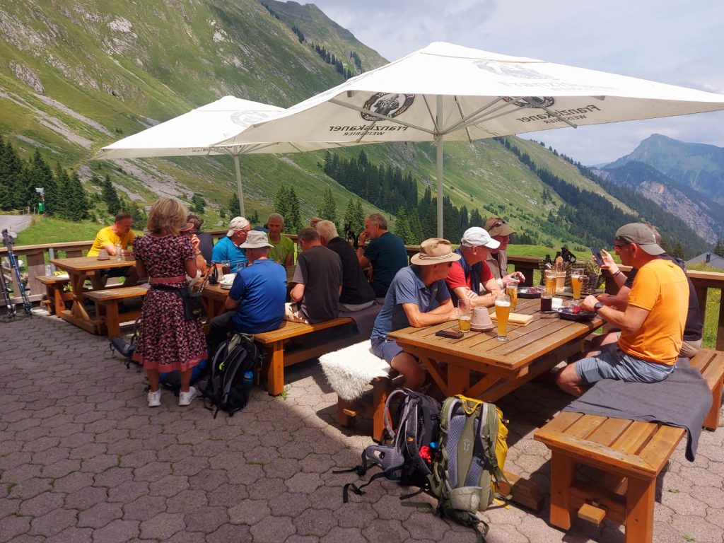 Sonntags verzögerte sich unsere fahrt nach Bödele aufgrund eines Radrennens. Den Aufstieg zur 1460 m hohen Hochälpele nahmen wir aber doch noch auf uns und konnten rechtzeitig vor dem Regen in der Hütte einkehren. Als es wieder trocken war, ging es zurück zu den Fahrzeugen mit einer schönen Aussicht auf den Bodensee. Zum Abschuss kehrten wir im Sportheim ein.